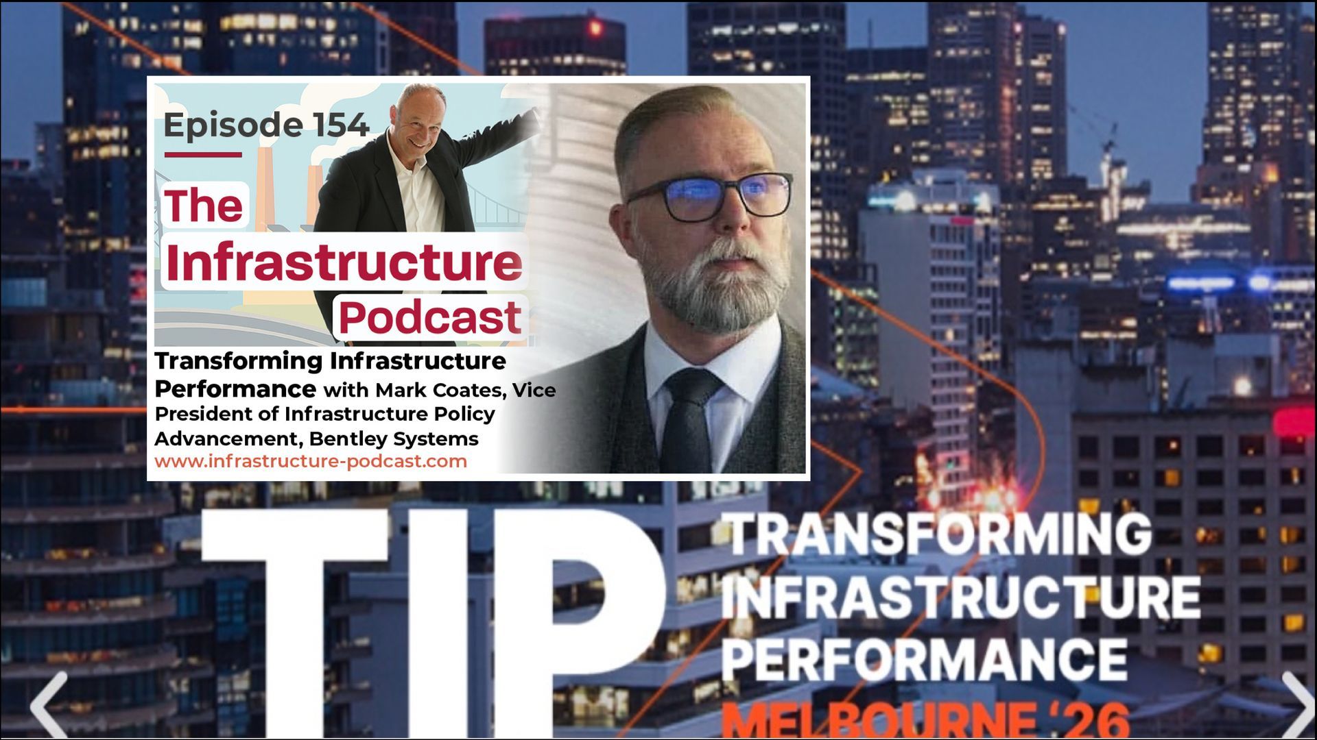 Let’s face it, we’ve been talking about modernising, digitising and decarbonising infrastructure for years. So in the latest episode of The Infrastructure Podcast, I sit down with Mark Coates FCIHT, FCInstCES, VP of Infrastructure Policy Advancement at Bentley Systems , to chew over how the global Transforming Infrastructure Performance (TIP) movement is actually starting to move the dial towards change. Have a listen here or find it wherever you get your podcasts - search “The Infrastructure Podcast” on Spotify, Apple, Google or YouTube. As we heard at the latest TIP summit in Melbourne, the "old way" of delivering projects - siloed data, stagnant productivity, and resource-heavy construction - is broken. Having worked with Mark on TIP summits from London and Singapore to our most recent stop in Melbourne, we’ve seen the same failings across the delivery chain - but also a wealth of positive lessons. For details of past and future TIP summits check out the Infrastructure Policy Advancement website here: https://lnkd.in/gEKmAjry Have a listen as we dive into: · How TIP evolved from a UK policy framework into a global movement. · Why we must shift from "building things" to "outcomes for people and the planet." · The roadmap for the future of infrastructure is being written now - how do you get on board? Listen to episode 154 to hear how industry change really is just around the corner!